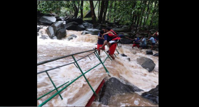ಶುಕ್ರವಾರ ಸಂಜೆ ಭಾರೀ ಮಳೆಯ ನಡುವೆ ಜಲಪಾತದಲ್ಲಿ ನೀರಿನ ಮಟ್ಟ ಏರಿಕೆಯಾಯಿತು. ಈ ವೇಳೆ ಕೇಬಲ್ ಸೇತುವೆ ಏಕಾಏಕಿ ಕುಸಿತಕ್ಕೊಳಗಾಯಿತು.