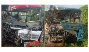 *ಮೂರು ಕೆ.ಎಸ್.ಆರ್.ಟಿ.ಸಿ ಬಸ್ ಗಳ ನಡುವೆ ಭೀಕರ ಅಪಘಾತ: 10 ಪ್ರಯಾಣಿಕರ ಸ್ಥಿತಿ ಗಂಭೀರ*