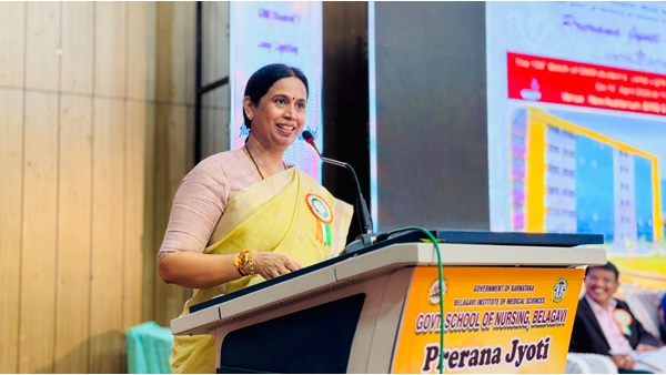 ಶನಿವಾರ ಬೆಳಗಾವಿಯ ಬಿಮ್ಸ್ (BIMS) ಕಟ್ಟಡದ ಹೊಸ ಸಭಾಂಗಣದಲ್ಲಿ ಆಯೋಜಿಸಲಾಗಿದ್ದ ಸರ್ಕಾರಿ ನರ್ಸಿಂಗ್ ಶಾಲೆಯ 109ನೇ ಬ್ಯಾಚ್ ವಿದ್ಯಾರ್ಥಿಗಳ “ಪ್ರೇರಣಾ ಜ್ಯೋತಿ – 2026” ದೀಪ ಬೆಳಗುವ ಮತ್ತು ಪ್ರಮಾಣ ವಚನ ಸ್ವೀಕಾರ ಸಮಾರಂಭ ಉದ್ಘಾಟಿಸಿ ಮಾತನಾಡುತ್ತಿದ್ದರು.