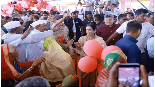 ಅದ್ಧೂರಿ ಕಾರ್ಯಕ್ರಮ: ಬೆನಕನಹಳ್ಳಿಯ ಗಾರ್ಡನ್ ಕೋರ್ಟ್ ಹೊಟೆಲ್ ಎದುರಿನ ಬೃಹತ್ ಮೈದಾನದಲ್ಲಿ ಅದ್ಧೂರಿಯಾಗಿ ಕಾರ್ಯಕ್ರಮ ನಡೆಯಿತು. ಸುಮಾರು 15 ಸಾವಿರಕ್ಕೂ ಹೆಚ್ಚು ಜನರು ಕಾರ್ಯಕ್ರಮದಲ್ಲಿ ಭಾಗವಹಿಸಿ, ಕುಳಿತಲ್ಲೇ ಕೈ ಎತ್ತಿ ಸಚಿವೆ ಲಕ್ಷ್ಮೀ ಹೆಬ್ಬಾಳಕರ್ ಅವರನ್ನು ಆಶಿರ್ವದಿಸಿದರು. ಹಿರಿಯರಿಗಾಗಿ ಇಂತಹ ಅಪರೂಪದ ಕಾರ್ಯಕ್ರಮ ಆಯೋಜಿಸಿದ್ದಕ್ಕಾಗಿ ಭಾಗವಹಿಸಿದ್ದವರು ಸಚಿವರನ್ನು ಮುಕ್ತ ಮನಸ್ಸಿನಿಂದ ಪ್ರಶಂಸಿಸಿದರು.