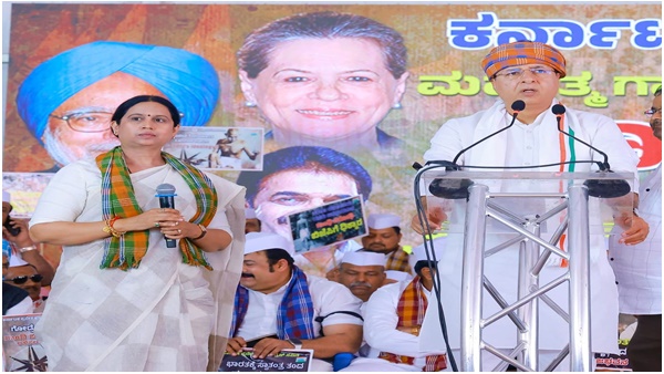 ಫ್ರೀಡಂ ಪಾರ್ಕ್ ನಲ್ಲಿ ಕೆ.ಪಿ.ಸಿ.ಸಿ ವತಿಯಿಂದ ಮಂಗಳವಾರ ನಡೆದ ” ನರೇಗಾ ಬಚಾವ್ ಸಂಗ್ರಾಮ್” ಆಂದೋಲನದ ಅಡಿಯಲ್ಲಿ ಬೃಹತ್ ಪ್ರತಿಭಟನೆ ಹಾಗೂ ರಾಜಭವನ್ ಚಲೋ ಕಾರ್ಯಕ್ರಮದಲ್ಲಿ ಮಾತನಾಡಿದ ಸಚಿವರು, ಕಾಂಗ್ರೆಸ್ ನೇತೃತ್ವದ ಕೇಂದ್ರ ಸರ್ಕಾರಗಳು ಗ್ರಾಮ ಪಂಚಾಯತಿಗೆ ಶಕ್ತಿ ನೀಡಿದ್ದವು, ಆದರೆ ಇಂದು ಅದನ್ನು ಕಸಿದುಕೊಳ್ಳಲಾಗುತ್ತಿದೆ ಎಂದರು.