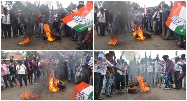 ನಗರದ ಆರ್ ಟಿಒ ವೃತ್ತದ ಕಾಂಗ್ರೆಸ್ ಕಚೇರಿಯಿಂದ ಚನ್ನಮ್ಮ ವೃತ್ತದವರೆಗೆ ಪ್ರತಿಭಟನಾ ಮೆರವಣಿಗೆ ನಡೆಸಿದ ಕಾರ್ಯಕರ್ತರು, ಚನ್ನಮ್ಮ ವೃತ್ತದಲ್ಲಿ ಟೈಯರ್ ಗೆ ಬೆಂಕಿ ಹಾಕಿ ಆಕ್ರೋಶ ವ್ಯಕ್ತಪಡಿಸಿದರು, ಕೇಂದ್ರದ ಬಿಜೆಪಿ ಸರಕಾರದ ವಿರುದ್ಧ ಘೋಷಣೆ ಕೂಗಿದರು.