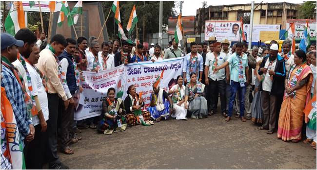 ಕಾಂಗ್ರೆಸ್ ಮುಖಂಡರಾದ ಚನ್ನರಾಜ ಹಟ್ಟಿಹೊಳಿ, ಮೃಣಾಲ್ ಹೆಬ್ಬಾಳಕರ, ಜಿಲ್ಲಾ ಕಾಂಗ್ರೆಸ್ ಘಟಕದ ಅಧ್ಯಕ್ಷ ವಿನಯ ನಾವಲಗಟ್ಟಿ, ನಗರ ಕಾಂಗ್ರೆಸ್ ಘಟಕದ ಅಧ್ಯಕ್ಷ ರಾಜು ಸೇಠ್, ಸಿ.ಸಿ. ಪಾಟೀಲ ಮೊದಲಾದವರ ನೇತೃತ್ವದಲ್ಲಿ ಪ್ರತಿಭಟನೆ ನಡೆಯಿತು.