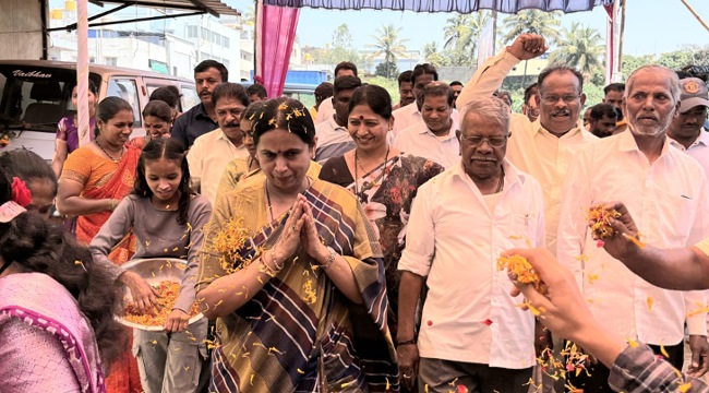 ಪ್ರಗತಿವಾಹಿನಿ ಸುದ್ದಿ, ಬೆಳಗಾವಿ: ಗಣೇಶಪುರದ ಶ್ರೀ ದುರ್ಗಾದೇವಿ ಜಾತ್ರಾ ಮಹೋತ್ಸವದ ಅಂಗವಾಗಿ ಮಹಿಳಾ ಮತ್ತು ಮಕ್ಕಳ ಅಭಿವೃದ್ಧಿ ಸಚಿವೆ ಲಕ್ಷ್ಮೀ ಹೆಬ್ಬಾಳಕರ್ ಇಂದು ದೇವಿಗೆ ವಿಶೇಷ ಪೂಜೆ ಸಲ್ಲಿಸಿ, ದರ್ಶನ ಪಡೆದು ನಾಡಿನ ಸುಭೀಕ್ಷೆಗಾಗಿ ಪ್ರಾರ್ಥನೆ ಸಲ್ಲಿಸಿದರು.