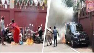 *ಹೈಕೋರ್ಟ್ ಬಳಿ ನಿಲ್ಲಿಸಿದ್ದ ವಾಹನಗಳಿಗೆ ಬೆಂಕಿ ಹಚ್ಚಿದ ಮಹಿಳೆ*
