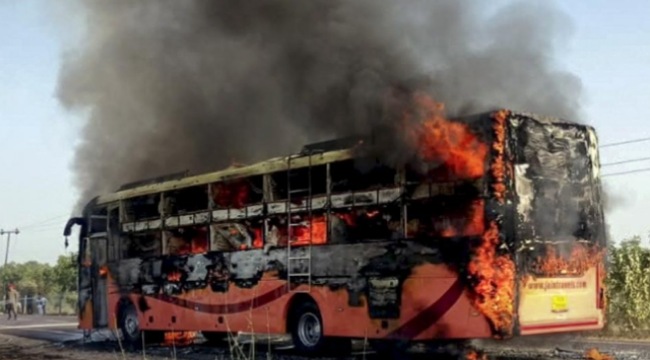 *ಖಾಸಗಿ ಬಸ್ ನಲ್ಲಿ ಕಾಣಿಸಿಕೊಂಡ ಬೆಂಕಿ: 20 ಜನ ಪ್ರಯಾಣಿಕರ ದುರ್ಮರಣ*