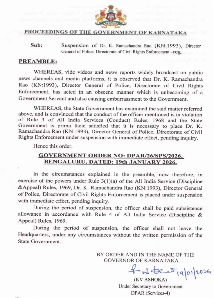 *ಡಿಜಿಪಿ ರಾಮಚಂದ್ರ ರಾವ್ ಸಸ್ಪೆಂಡ್*
